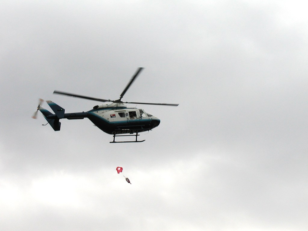 今年も、ヘリコプター登場。花束を落とす瞬間をとらえることに成功した! 20回記念大会で、中山竹道先生が、呼ばれて来たのだった。 話によると、この人は、他の大会をすっぽかしたことがあるとか・・・・ いいなあ、そう言う人って嫌いじゃないな。 しかも、”マラソンは、つまらない!”と、力説していったのだった。(だったらやめれば・・)