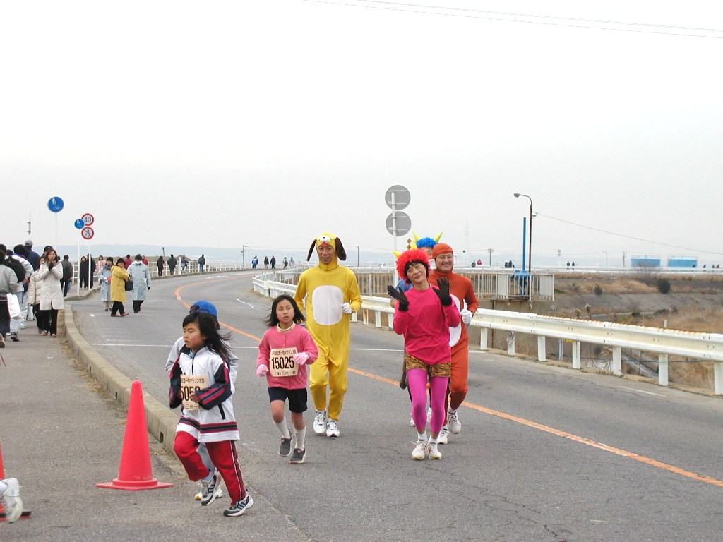 あ、着ぐるみマンが、一緒に走っているではないか。
