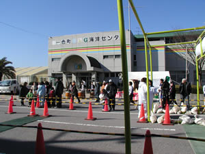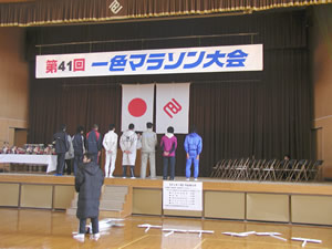 この大会の良いところは、着順でラッキー賞をきめるところでしょう。 今年は、当たるでしょうか? いや、はずれました。 でも、サービスの豚汁が最高に美味しいので許しちゃいましょう。 寒い中、太鼓の応援もご苦労様です。2時間以上、たたき続けだったような気もします。