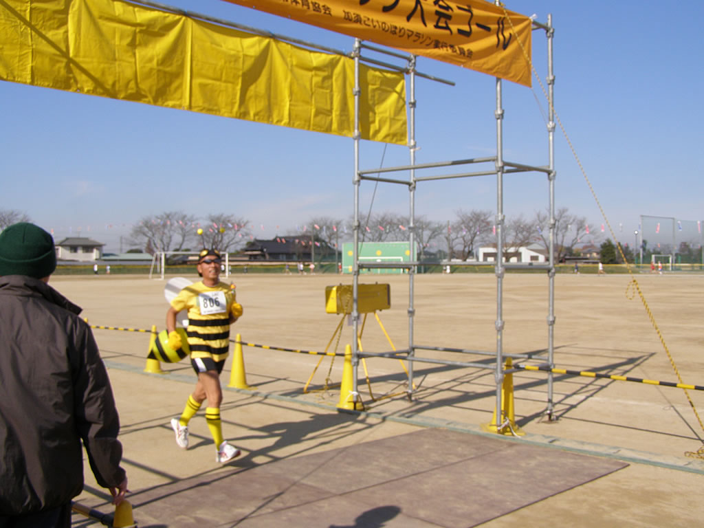 結局記録は、大したことがなかったが、一応、1時間30分を切れたのが収穫だろう。 練習で疲れたままスタートして、これだけやれるのだから、調子が良いのだろう。 あとは、見学。 あ、蜂と、こいのぼりマンが、走っているではないか。 とりあえず、この大会はお勧めです。 手打ちうどんと、トン汁も付いています。 来年も、練習の合間に参加しよう・・・・・・