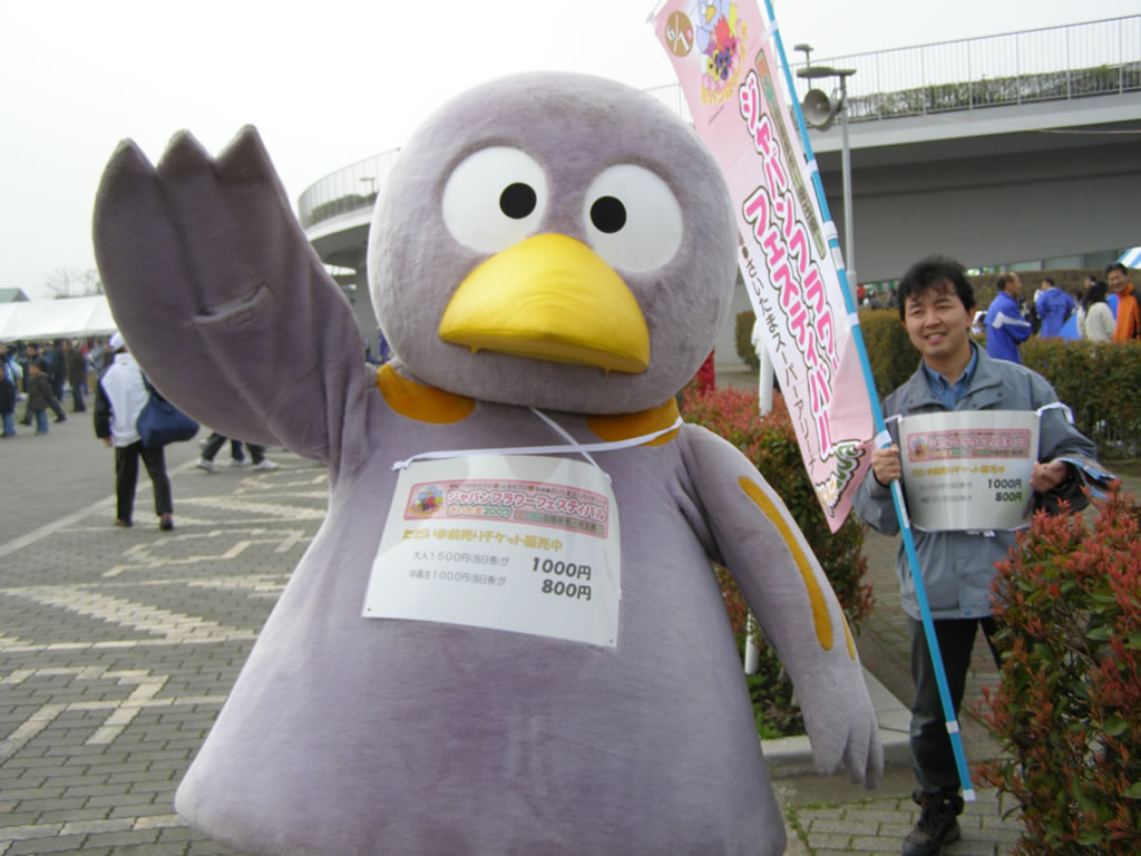 あ、あれは、コバトンでは、ないか。撮影、撮影。あら、フラワーフェスティバルの宣伝だったの・・・