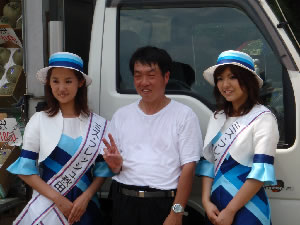 秋田美人さんと記念撮影を”はまぐりやチーム”全員で行った。
