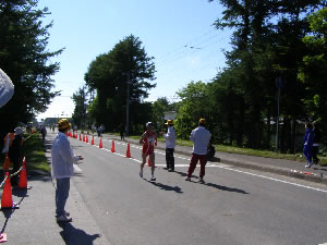 帰りのバスが、どこから出るのか分からなかったので、ゴールしてくる人でも見てみる。