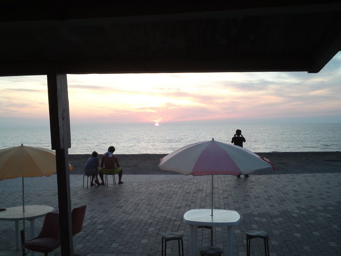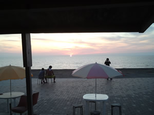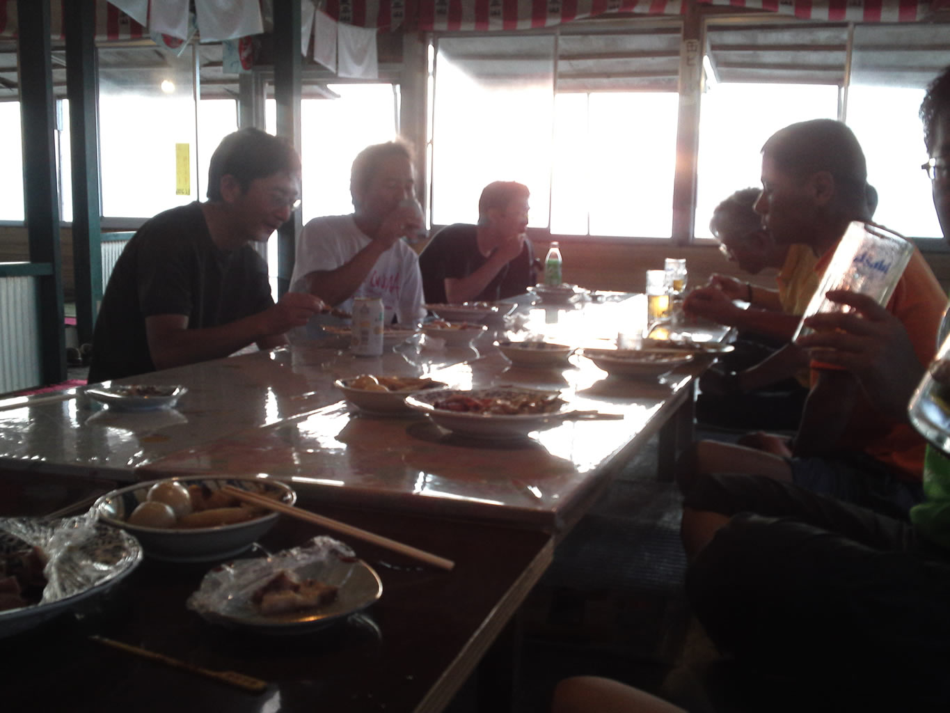 温泉に入った後、夕日を見ながら宴会を始めるのだった。