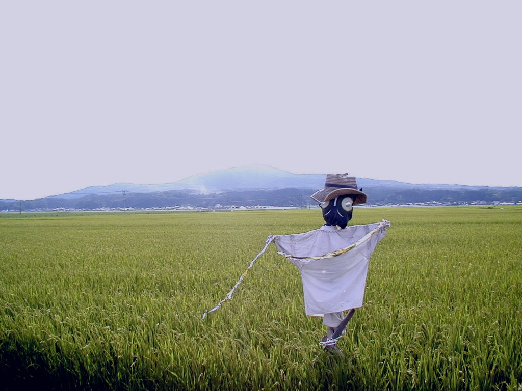 今年の夏は、秋田県の八郎潟の近く、 若美町にやってきました。 参加者全員に大きなメロンを2個もくれる、 非常に有難い大会です。 しかし、この田舎の雰囲気はいい。 私の小さかった頃を、思い出す。 「やーまだの、なーかの、いっぽんあしの・・・」 この歌は、私の家の近くで発生したらしい。 それにしても、この案山子は、 いい味だしている。 | |